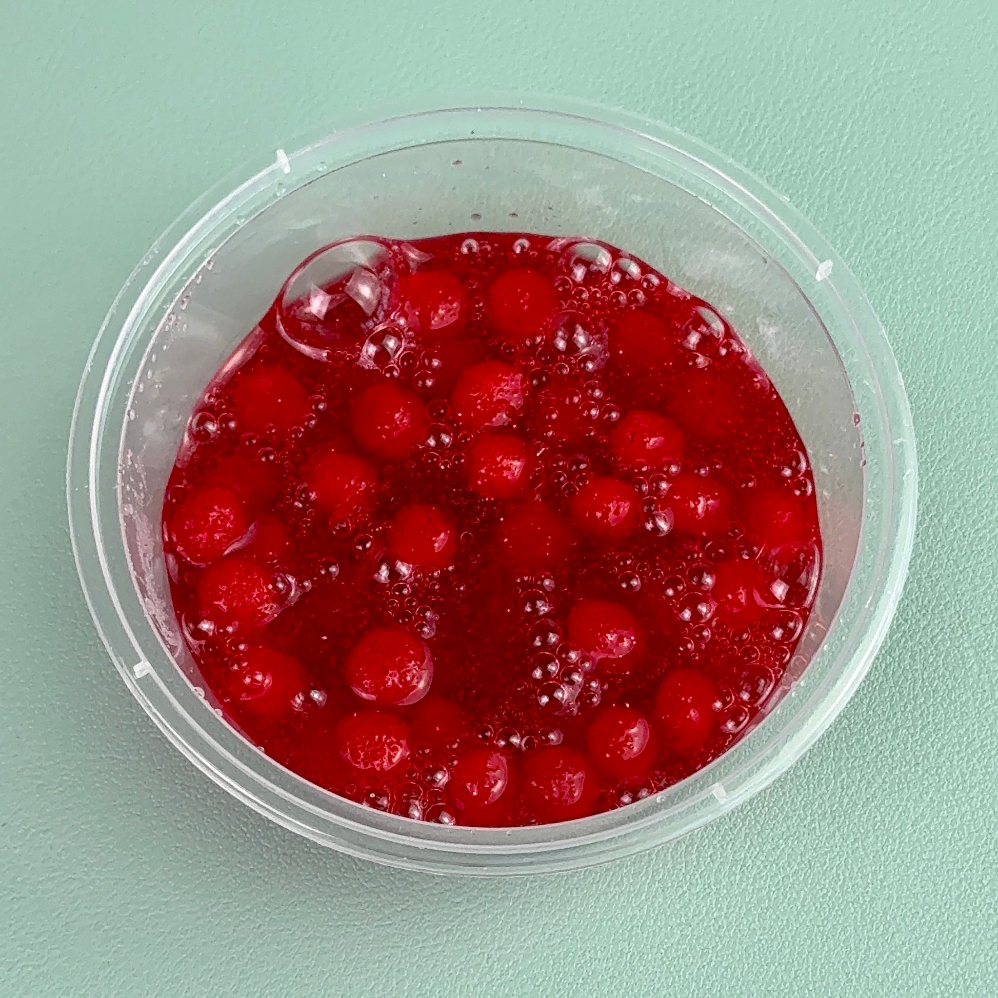 2 oz Sparkly Red Clear Thiggly Slime with Pom Poms